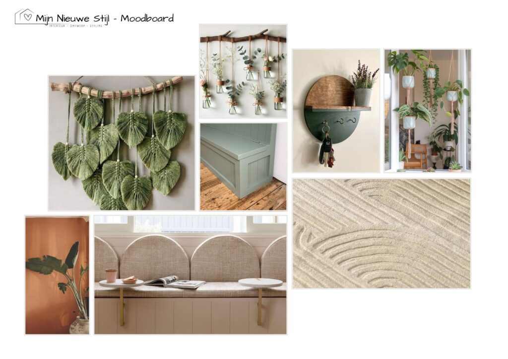 Het kleurenpalet is warm en aards, afgestemd op hun stijl. Zo wordt de hal een plek die rust uitstraalt en waar je na een lange dag even kunt landen.