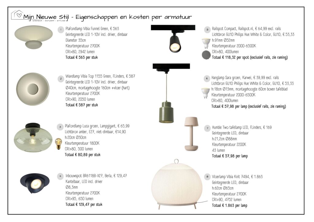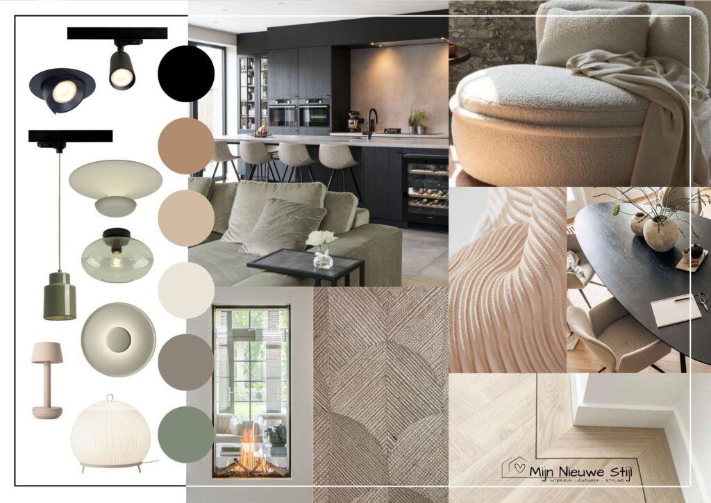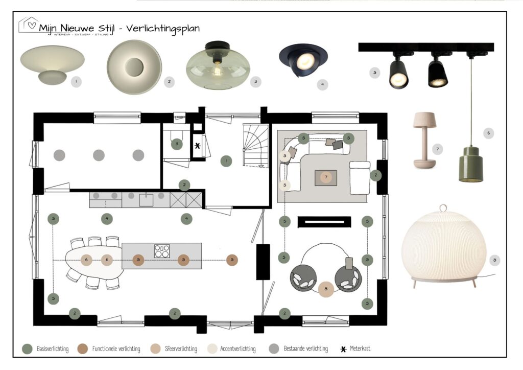 Het verlichtingsplan is ontworpen met oog voor zowel esthetiek als functionaliteit. Een stevige basis van zwarte armaturen zorgt voor een strakke, tijdloze uitstraling, aangevuld met verrassende elementen die warmte en sfeer brengen. Railverlichting benadrukt de flexibiliteit en het industriële randje dat Jessie en James zo aanspreekt, terwijl zachte accenten zorgen voor balans en een uitnodigende sfeer.